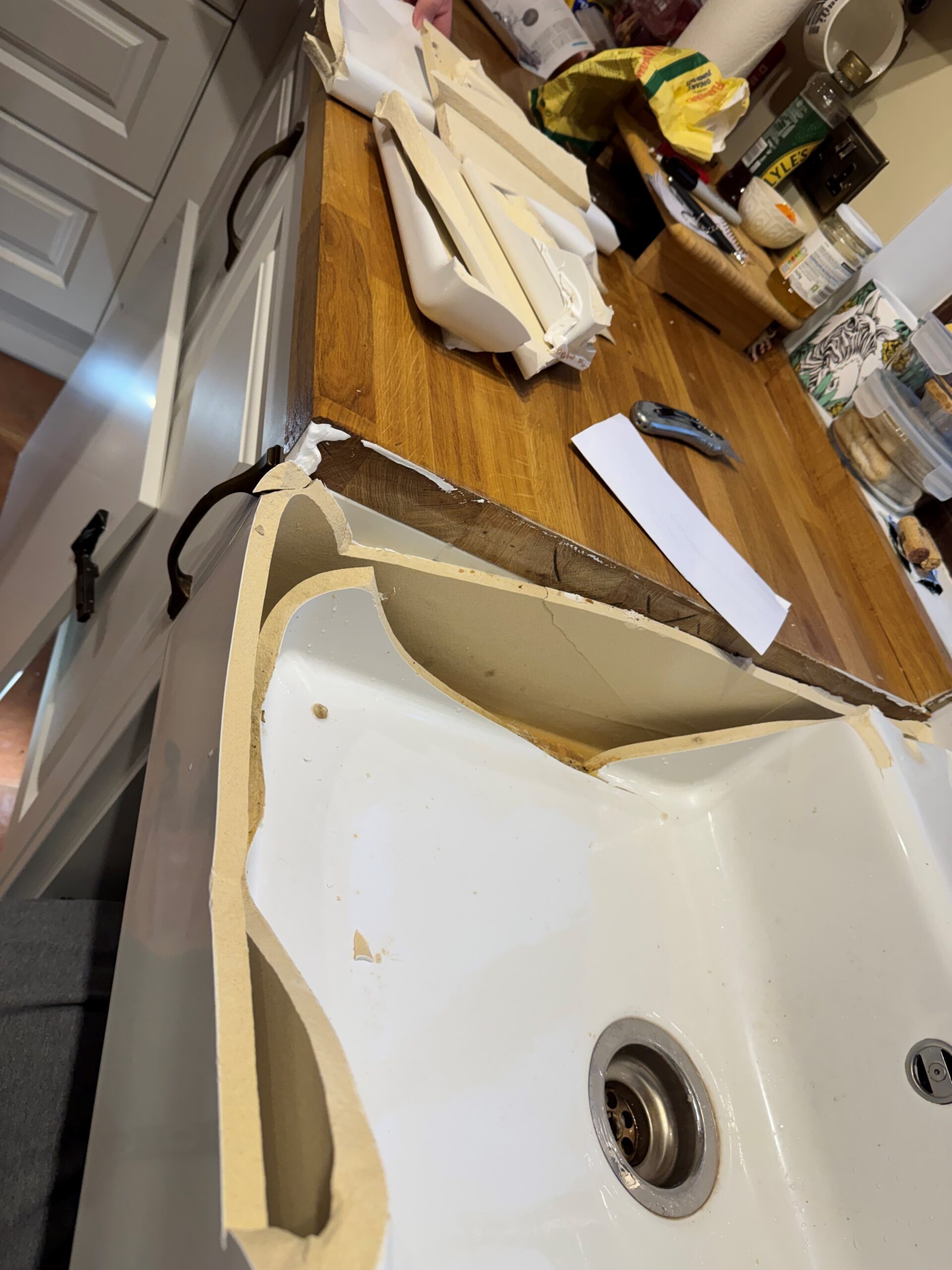 Wren approved a 2nd sink on 7th October along with replacements for ALL the solid oak worktops to counter what they had now assessed as the faulty initial installation! The replacement delivery arrived 27th October and is now taking up a large part of our hallway once again… As of 30th October we’re still waiting on a new fitter to become available even though they have “internally escalated” it as a priority!